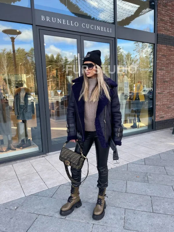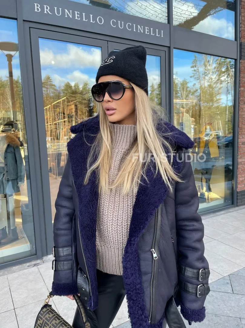 Натуральная овчина позаботится о комфортной температуре тела в любую непогоду и холода. Широкие рукава не сковывают движения, что очень удобно для тех, кто водит машину. Добавьте в образ стильный рюкзак и грубые ботинки - будете выглядеть дерзко, но очень женственно. Купить авиатор из натуральной овчины в синем цвете могут девушки, которые следят за модой и не боятся экспериментировать.