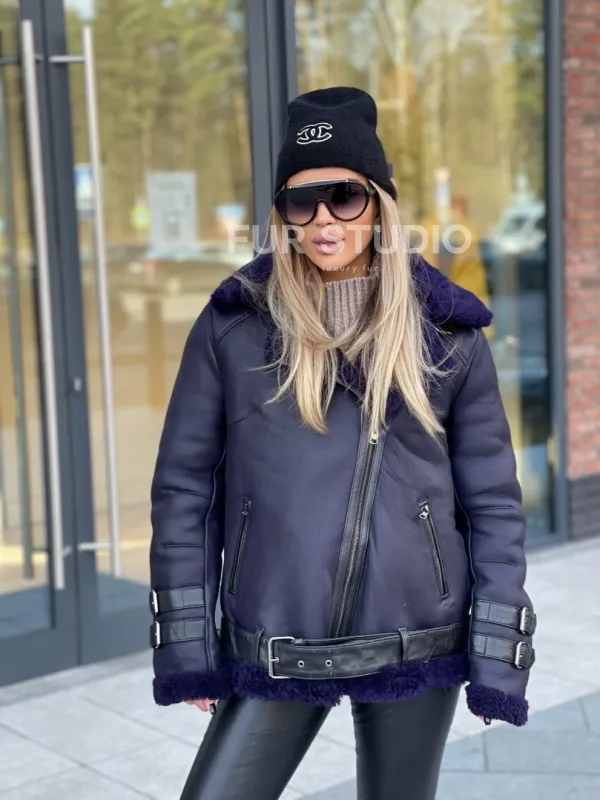 Авиатор из натуральной овчины в синем цвете – выбор свободных девушек, которые любят быть в тренде. Модель – хит сезона этой зимы. В таком образе вы будете выглядеть стильно и дерзко. Кожаные ремни и застежки в виде аксессуаров подчеркивают оригинальность изделия. Необычный оттенок выгодно выделит цвет волос и глаз владелицы.