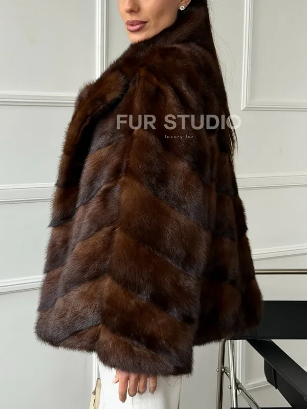 Мех данной шубы аукционная норка , цвет коричневый. Предлагается в размерах от 42 до 50. Длина модели 65-70 см, что выгодно подчеркивает фигуру девушек. Эта модель идеально подойдет для девушек и женщин, предпочитающих роскошные натуральные меха.