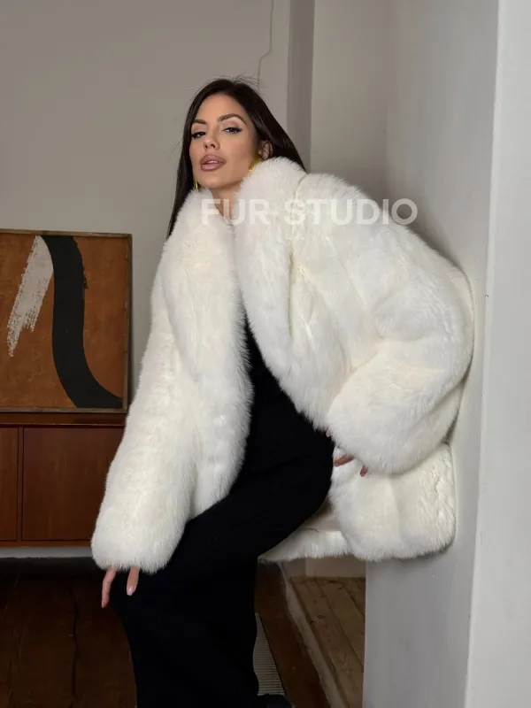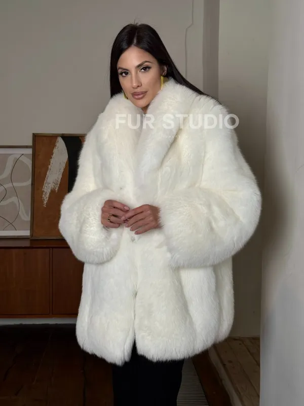 Белая шуба из меха лисы - воротник шаль 101456