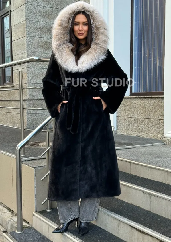 Черная норковая шуба с капюшоном из рыси доступна для покупки в нашем шоуруме Furs Studio в . У нас так же есть доставка во все города России. Добавьте немного роскоши в свой гардероб с этой шубой, которая будет служить вам многие годы.