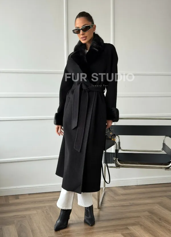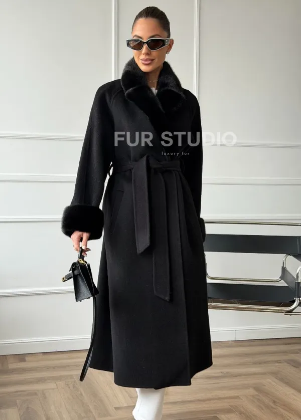 Черное пальто с мехом норки 102666
