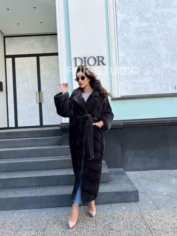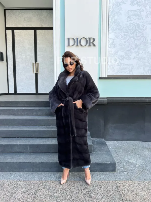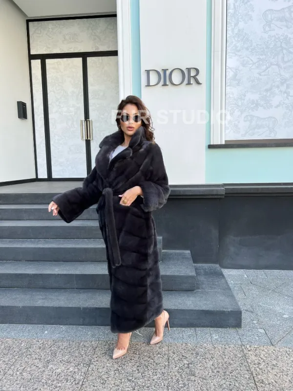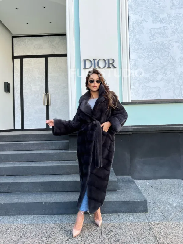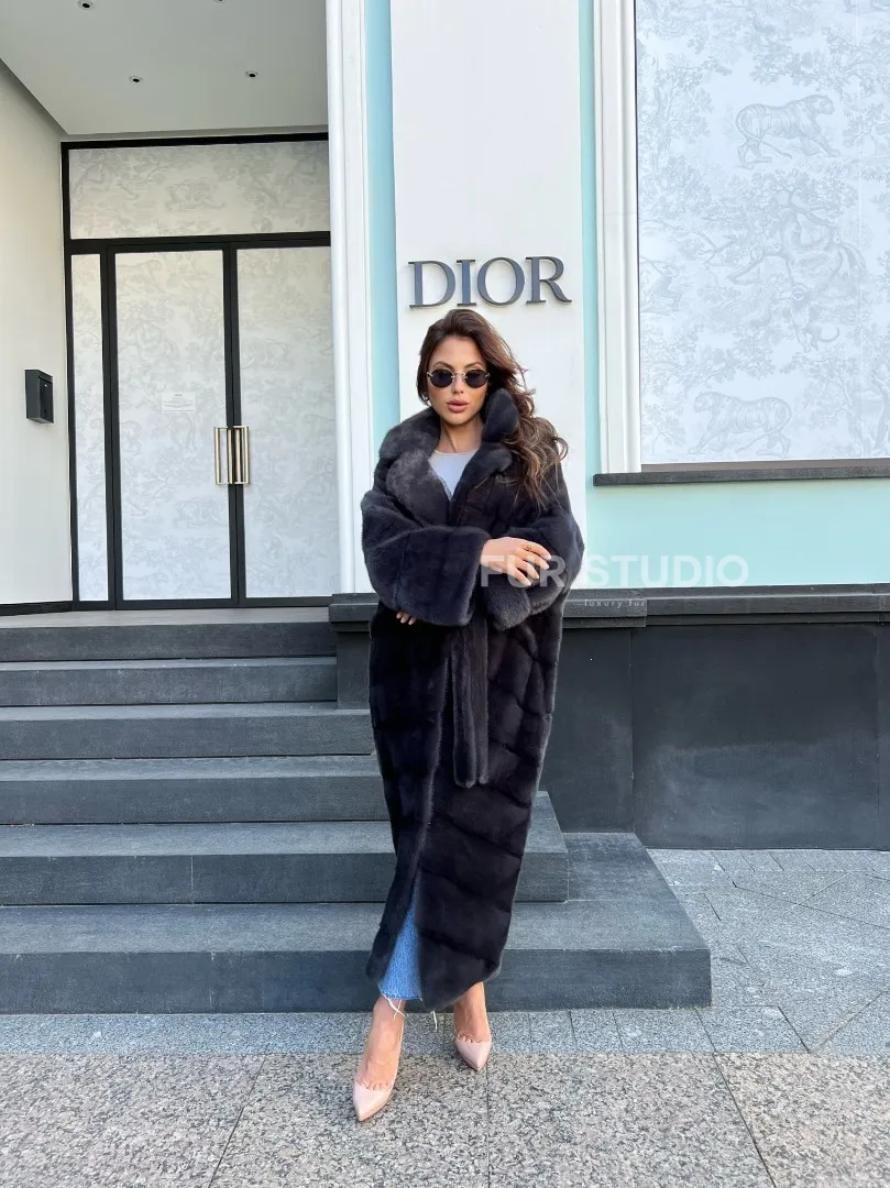 Длинная норковая шуба в цвете графит – выбор утонченных, роскошных леди. Каждая дама должна иметь в гардеробе изделие из норки. Это классика, которая никогда не выходит из моды. В любое время вы будете выглядеть дорого и со вкусом, вне зависимости от моды. Длинная модель позволяет носить короткие вещи даже в холодное время года. Нежный мех бережно согреет вас в непогоду.