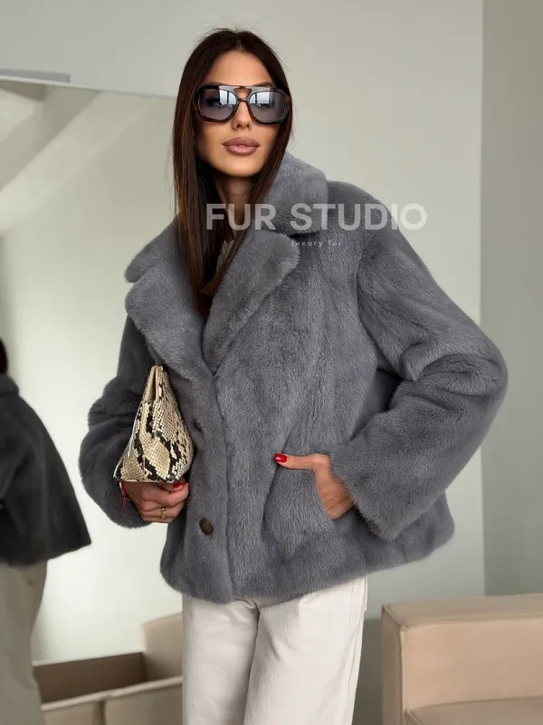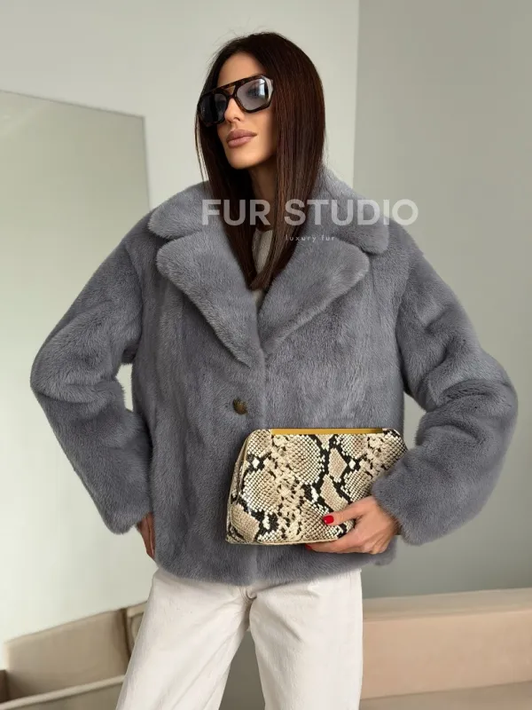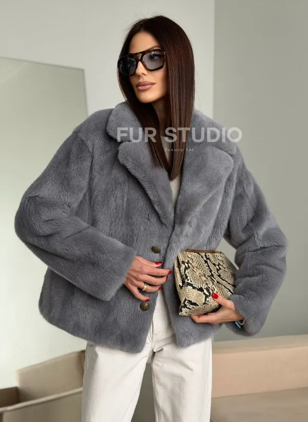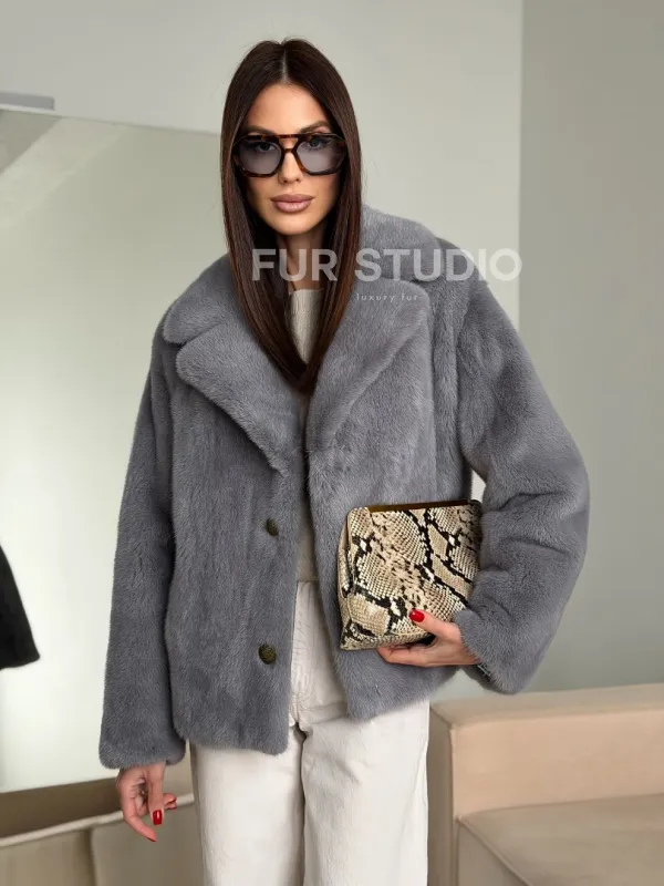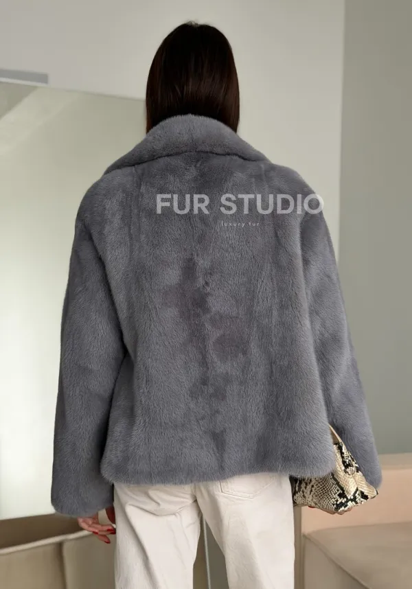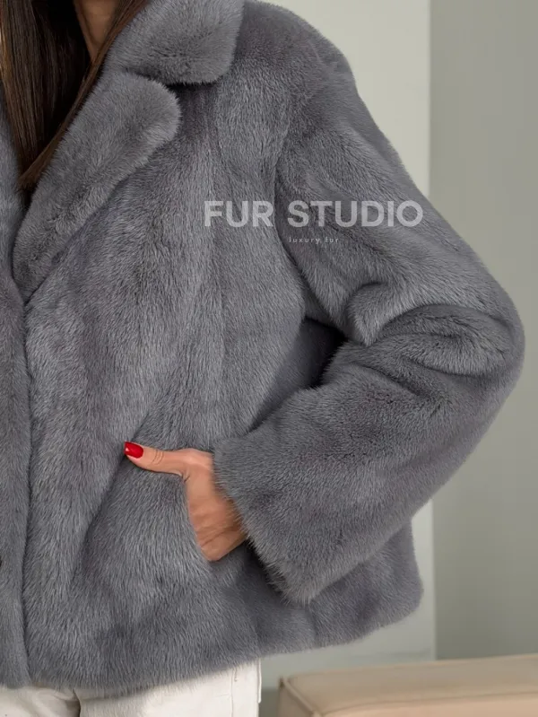 Мех данной шубы аукционная норка, цвет серый. Предлагается в размерах от 42 до 52. Длина модели 55-60 см, что выгодно подчеркивает фигуру девушек. Эта модель идеально подойдет для девушек и женщин, предпочитающих роскошные натуральные меха.