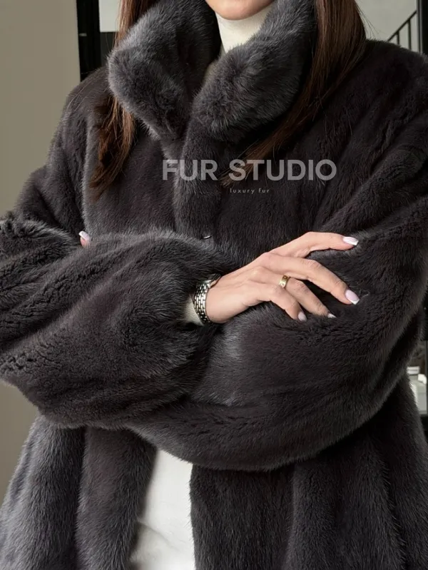 Мех данной шубы аукционная норка, цвет серый. Предлагается в размерах от 42 до 52. Длина модели 65-70 см, что выгодно подчеркивает фигуру девушек. Эта модель идеально подойдет для девушек и женщин, предпочитающих роскошные натуральные меха.