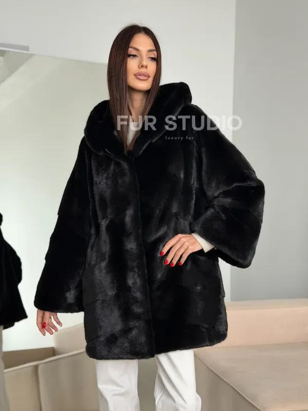 Норка шуба BLACKGLAMA паркет кимоно с капюшоном 102792