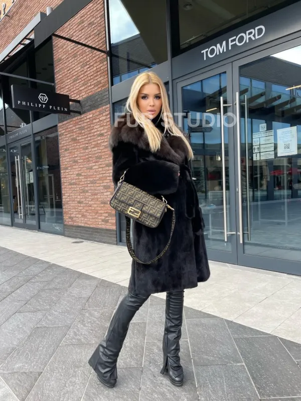 Норковая шуба с капюшоном из меха куницы – модель, которая никогда не выйдет из моды. Норка всегда указывает на особый статус владелицы, о ней мечтают все представительницы прекрасного пола. Нежный мех бережно позаботится о комфортной температуре, даже если на улице сильные морозы. Шикарный капюшон из меха куницы сохранит прическу в любую непогоду.
