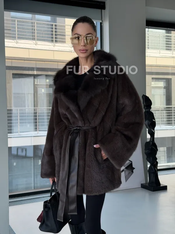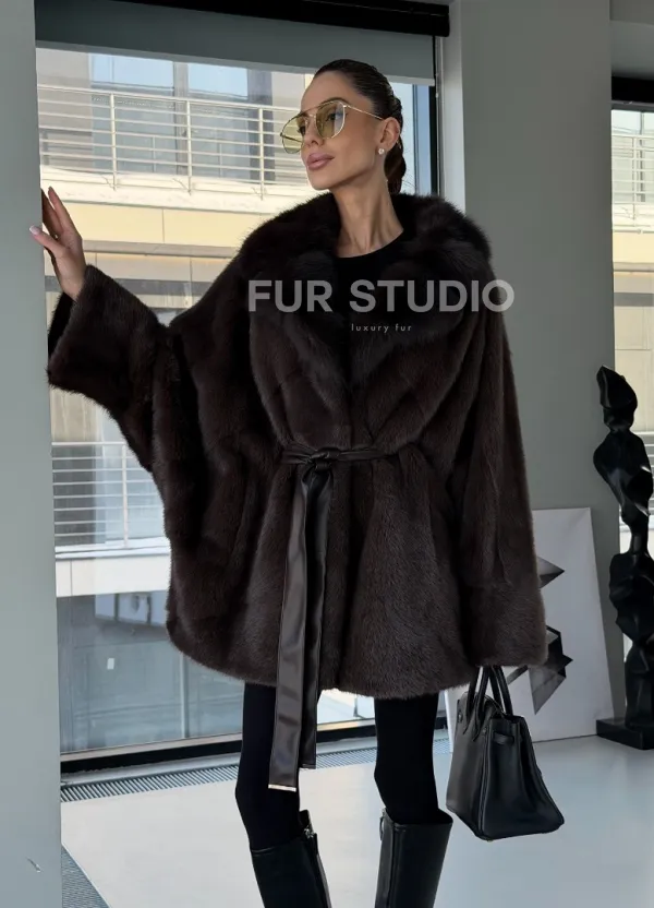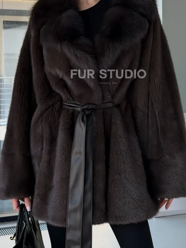 Мех данной шубы аукционная норка , цвет коричневый. Предлагается в размерах от 42 до 54. Длина модели 75-80 см, что выгодно подчеркивает фигуру девушек. Эта модель идеально подойдет для девушек и женщин, предпочитающих роскошные натуральные меха.