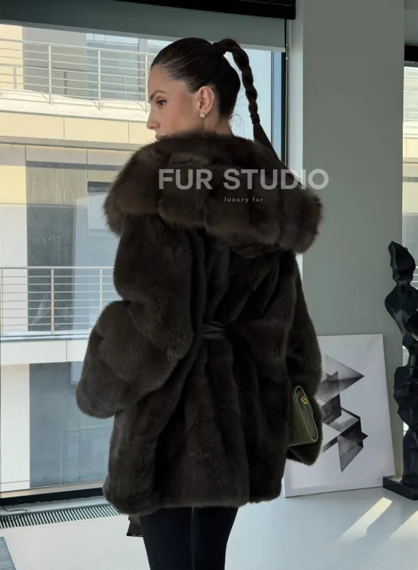 Норковое пончо шуба с капюшоном из меха куницы dark olive доступна для покупки в нашем шоуруме Furs Studio в . У нас так же есть доставка во все города России. Добавьте немного роскоши в свой гардероб с этой шубой, которая будет служить вам многие годы.