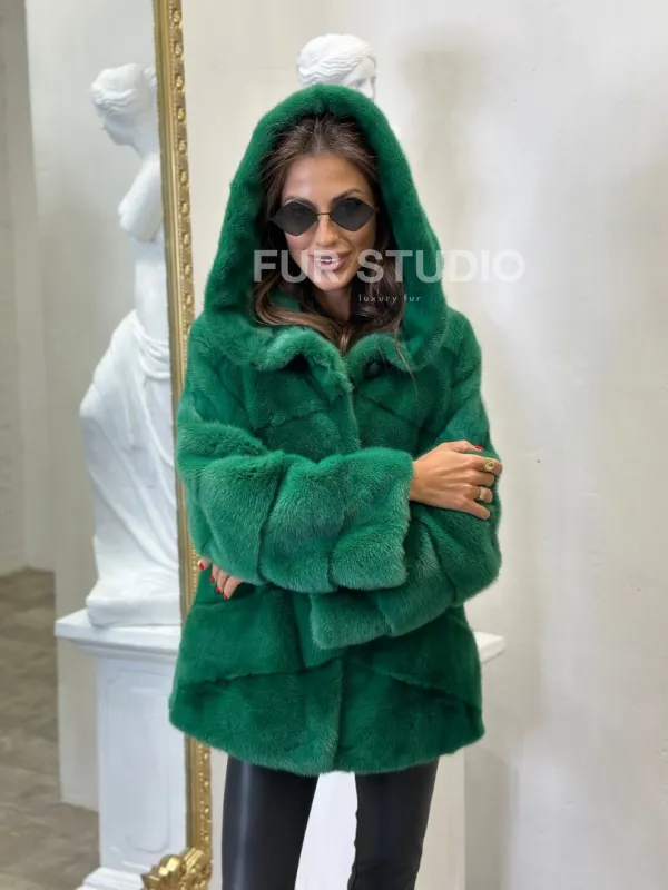 Норковый полушубок с капюшоном - цвет изумруд доступна для покупки в нашем шоуруме Furs Studio в . У нас так же есть доставка во все города России. Добавьте немного роскоши в свой гардероб с этой шубой, которая будет служить вам многие годы.