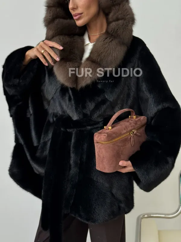 Норковый полушубок с капюшоном - летучая мышь 102399