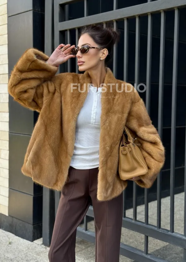 Мех данной шубы аукционная норка, цвет бежевый. Предлагается в размерах от 42 до 46. Длина модели 55-60 см, что выгодно подчеркивает фигуру девушек. Эта модель идеально подойдет для девушек и женщин, предпочитающих роскошные натуральные меха.