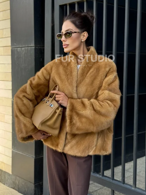 Норковый жакет Gold воротник V-образный 102229
