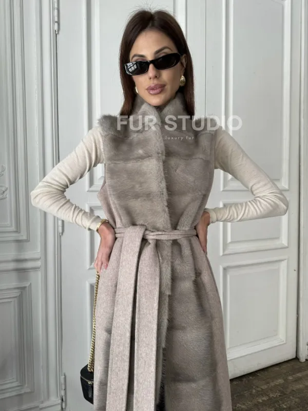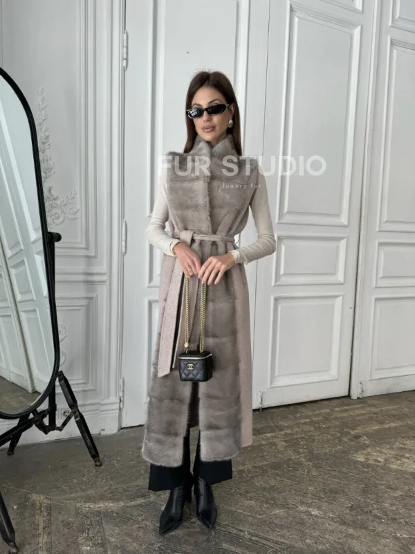 Пальто с мехом норки цвет серый 100890