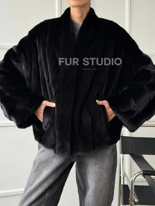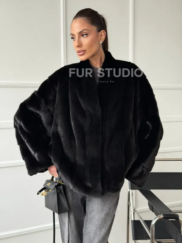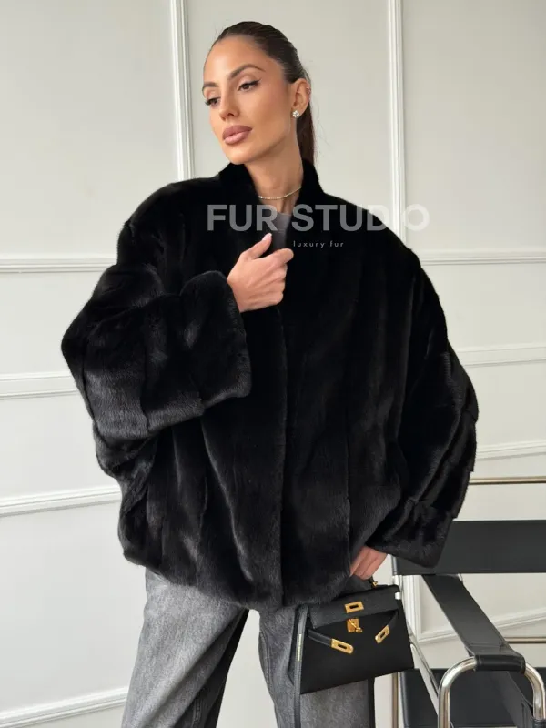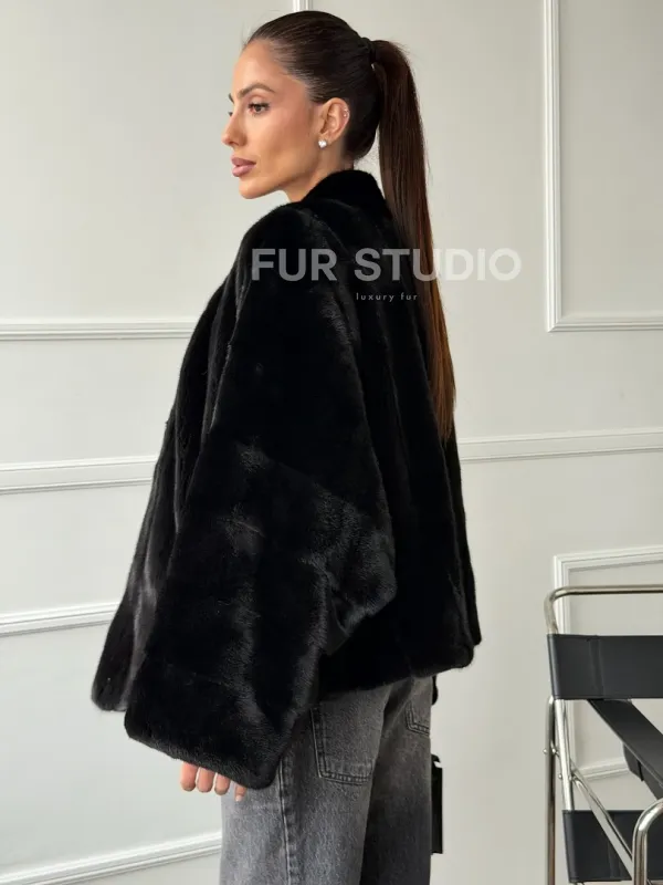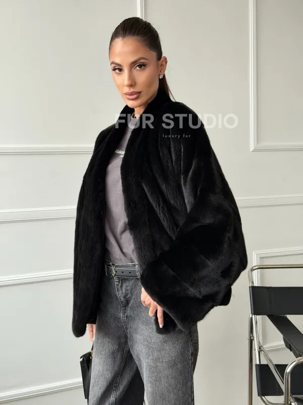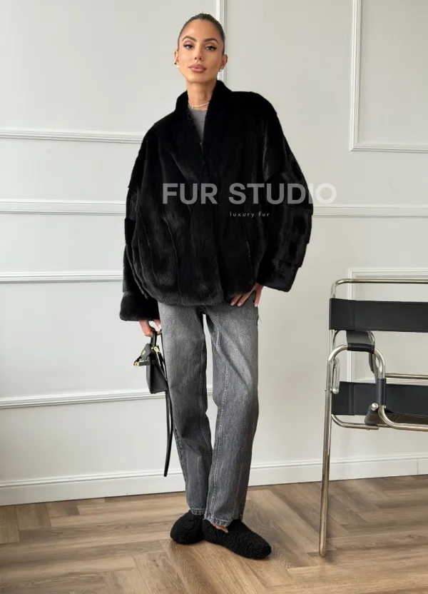 Мех данной шубы аукционная норка, цвет черный. Предлагается в размерах от 40 до 56 (oversize). Длина модели 60-65 см, что выгодно подчеркивает фигуру девушек. Эта модель идеально подойдет для девушек и женщин, предпочитающих роскошные натуральные меха.