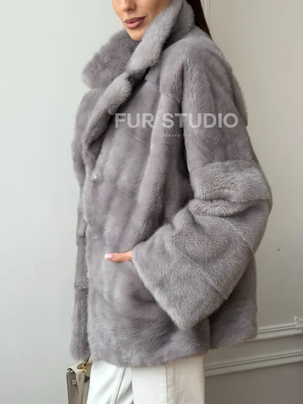Мех данной шубы аукционная норка, цвет серый. Предлагается в размерах от 42 до 54. Длина модели 70-75 см, что выгодно подчеркивает фигуру девушек. Эта модель идеально подойдет для девушек и женщин, предпочитающих роскошные натуральные меха.