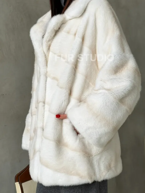 Мех данной шубы аукционная норка, цвет белый. Предлагается в размерах от 42 до 50. Длина модели 70-75 см, что выгодно подчеркивает фигуру девушек. Эта модель идеально подойдет для девушек и женщин, предпочитающих роскошные натуральные меха.