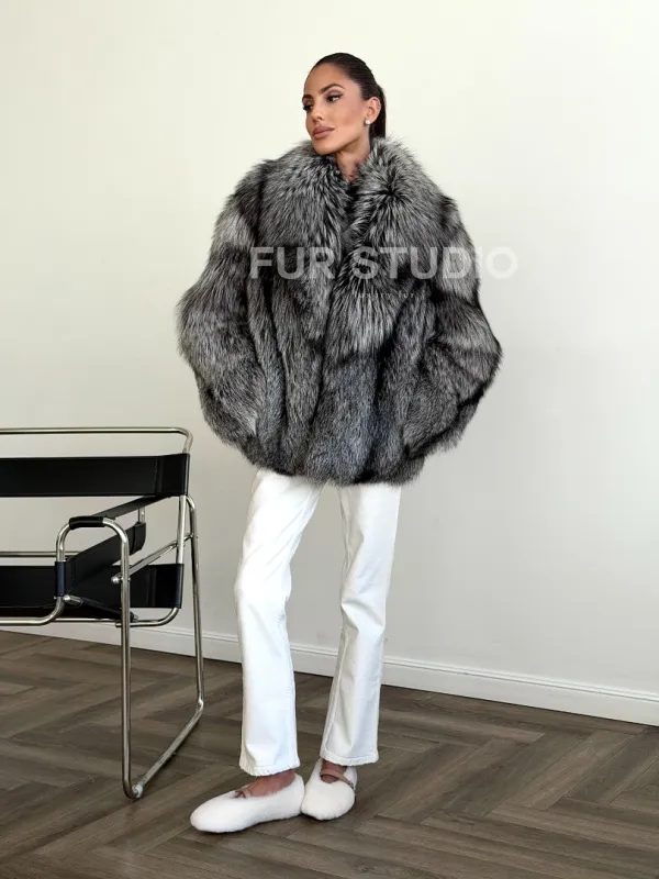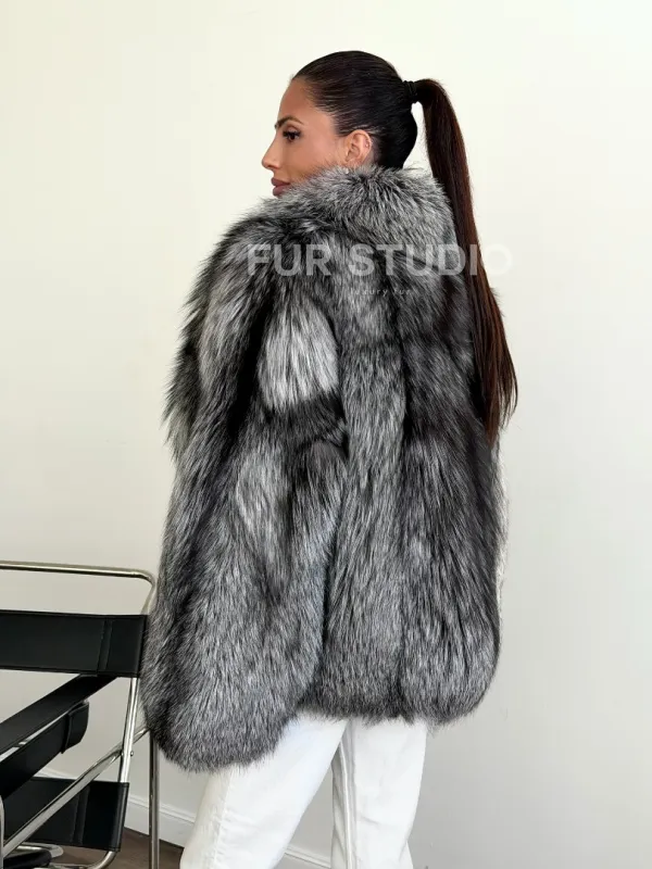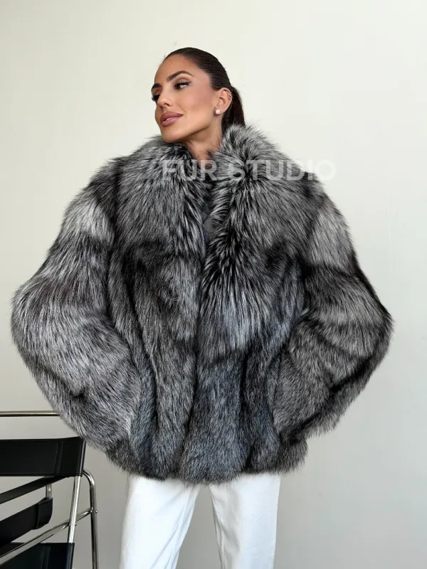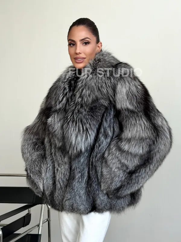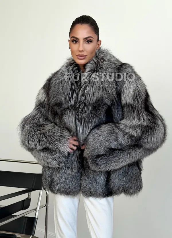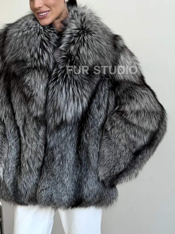Мех данной шубы лиса, цвет серый. Предлагается в размерах от 42 до 46. Длина модели 60-65 см, что выгодно подчеркивает фигуру девушек. Эта модель идеально подойдет для девушек и женщин, предпочитающих роскошные натуральные меха.