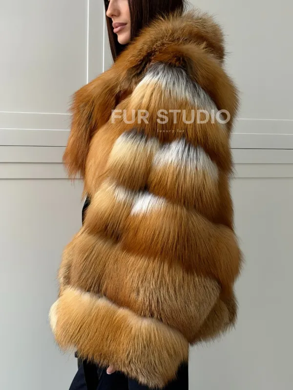 Мех данной шубы лиса, цвет рыжий. Предлагается в размерах от One Size (42 до 50). Длина модели 70-75 см, что выгодно подчеркивает фигуру девушек. Эта модель идеально подойдет для девушек и женщин, предпочитающих роскошные натуральные меха.