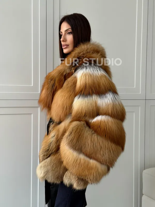 Шуба из лисы огневки - оверсайз 102808