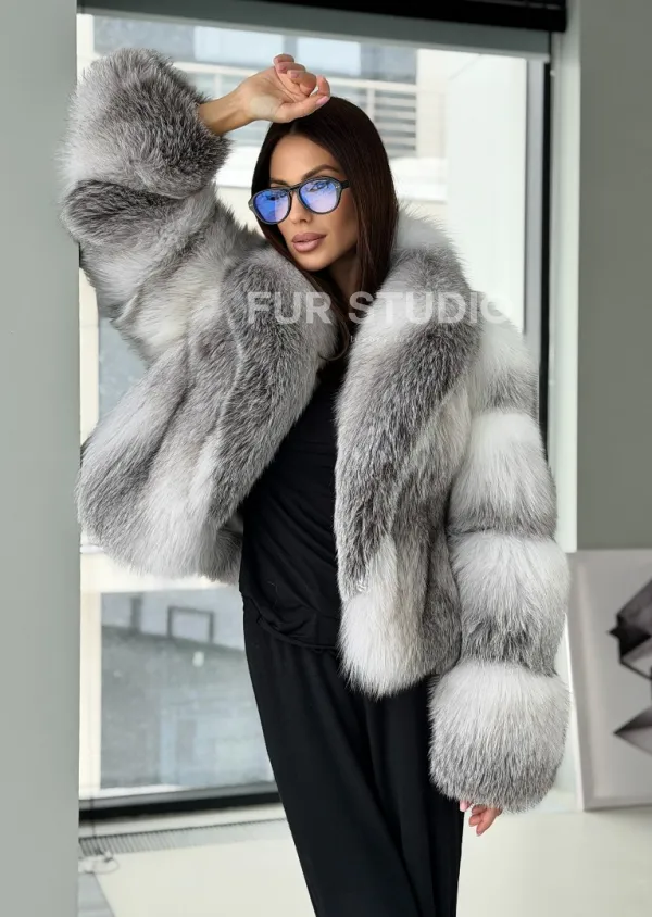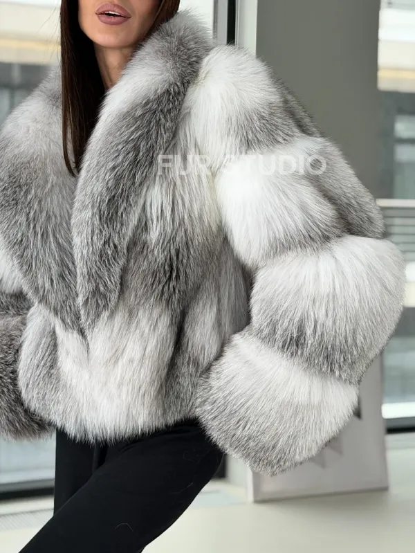 Шуба из меха арктической лисы - белая 102905
