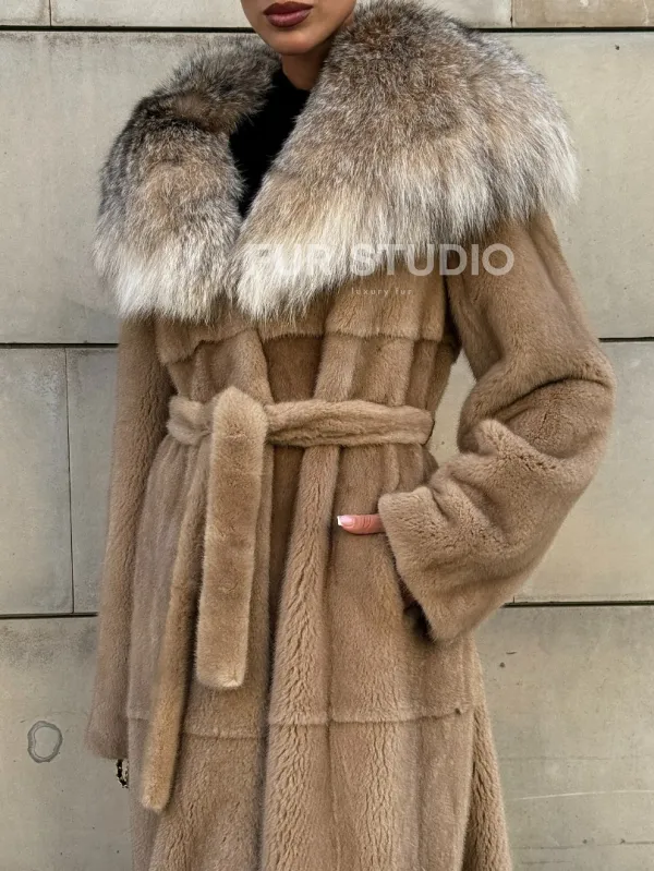 Шуба из норки Caramel с капюшоном из меха рыси доступна для покупки в нашем шоуруме Furs Studio в . У нас так же есть доставка во все города России. Добавьте немного роскоши в свой гардероб с этой шубой, которая будет служить вам многие годы.