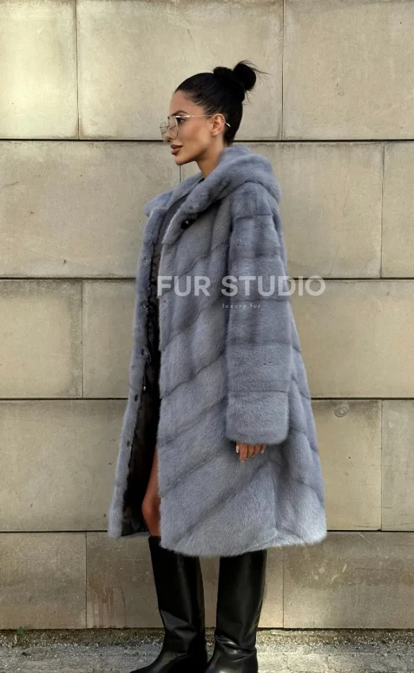 Шуба midi из меха норки с капюшоном, рукава трансформер 101059