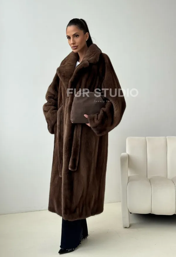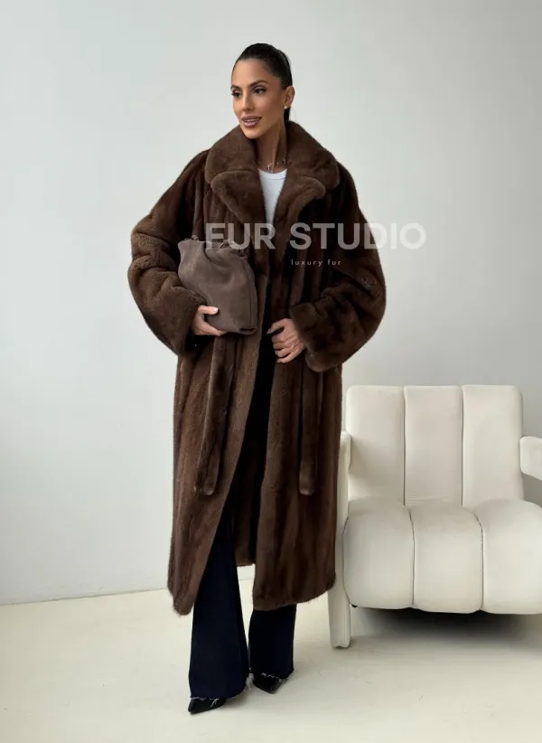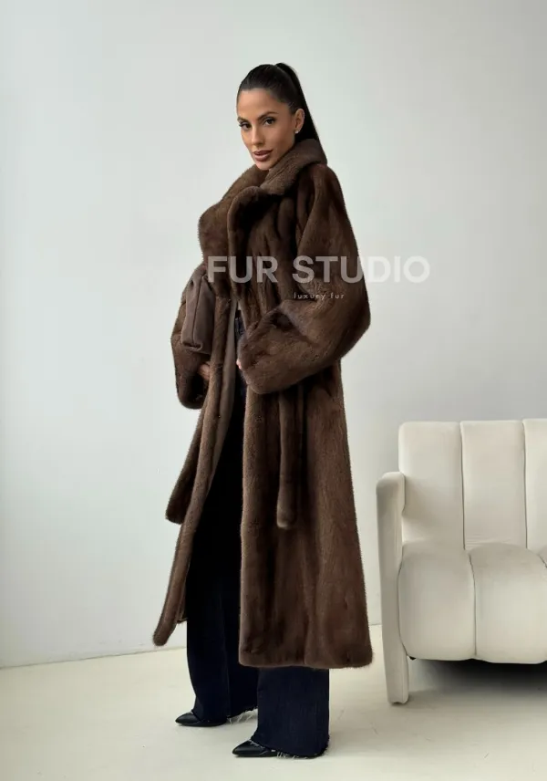 Мех данной шубы аукционная норка , цвет коричневый. Предлагается в размерах от 42 до 54. Длина модели 115-120 см, что выгодно подчеркивает фигуру девушек. Эта модель идеально подойдет для девушек и женщин, предпочитающих роскошные натуральные меха.