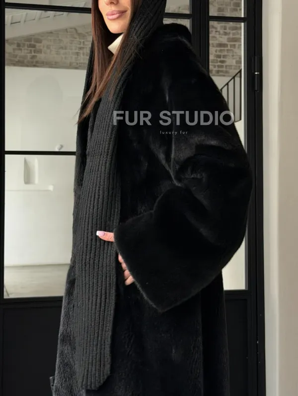 Мех данной шубы аукционная норка , цвет черный . Предлагается в размерах от 42 до 52. Длина модели 115-120 см, что выгодно подчеркивает фигуру девушек. Эта модель идеально подойдет для девушек и женщин, предпочитающих роскошные натуральные меха.