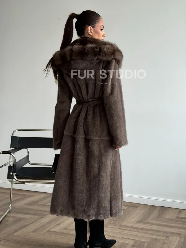 Шуба норковая длинная с капюшоном 102630