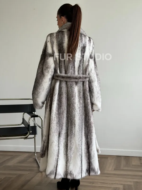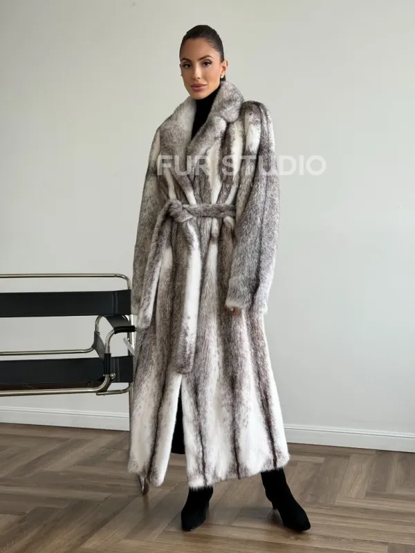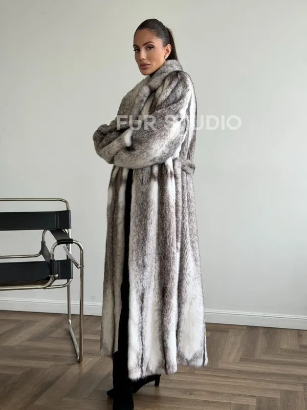 Мех данной шубы аукционная норка, цвет белый. Предлагается в размерах от 44 до 50. Длина модели 125-130 см, что выгодно подчеркивает фигуру девушек. Эта модель идеально подойдет для девушек и женщин, предпочитающих роскошные натуральные меха.