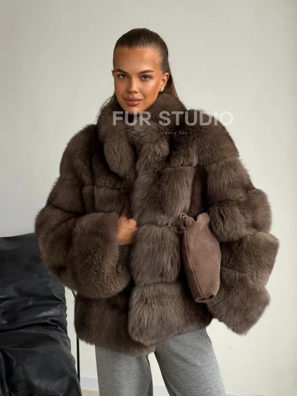 Мех данной шубы финский песец, цвет коричневый. Предлагается в размерах от 42 до 46. Длина модели 60-65 см, что выгодно подчеркивает фигуру девушек. Эта модель идеально подойдет для девушек и женщин, предпочитающих роскошные натуральные меха.