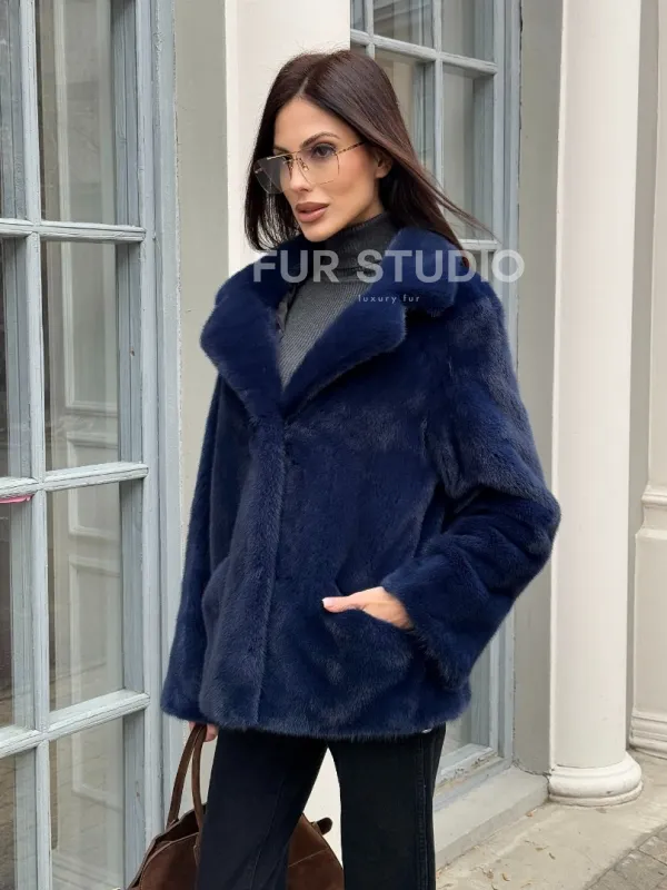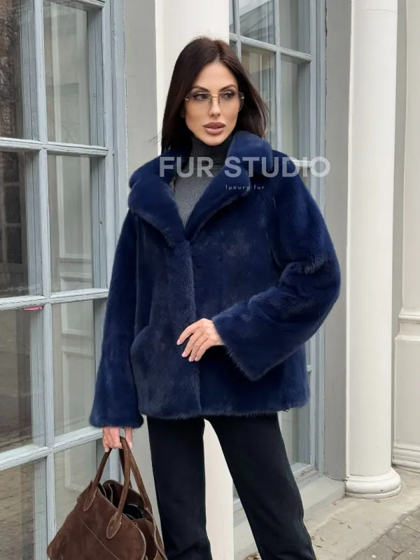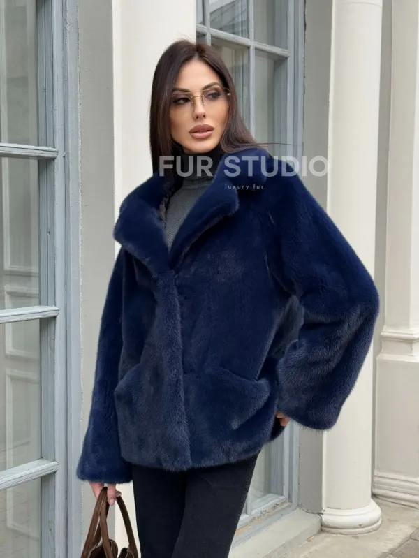 Синий норковый полушубок с английским воротником доступна для покупки в нашем шоуруме Furs Studio в . У нас так же есть доставка во все города России. Добавьте немного роскоши в свой гардероб с этой шубой, которая будет служить вам многие годы.