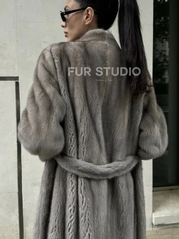 Мех данной шубы аукционная норка, цвет серый. Предлагается в размерах от 42 до 50. Длина модели 105-110 см, что выгодно подчеркивает фигуру девушек. Эта модель идеально подойдет для девушек и женщин, предпочитающих роскошные натуральные меха.