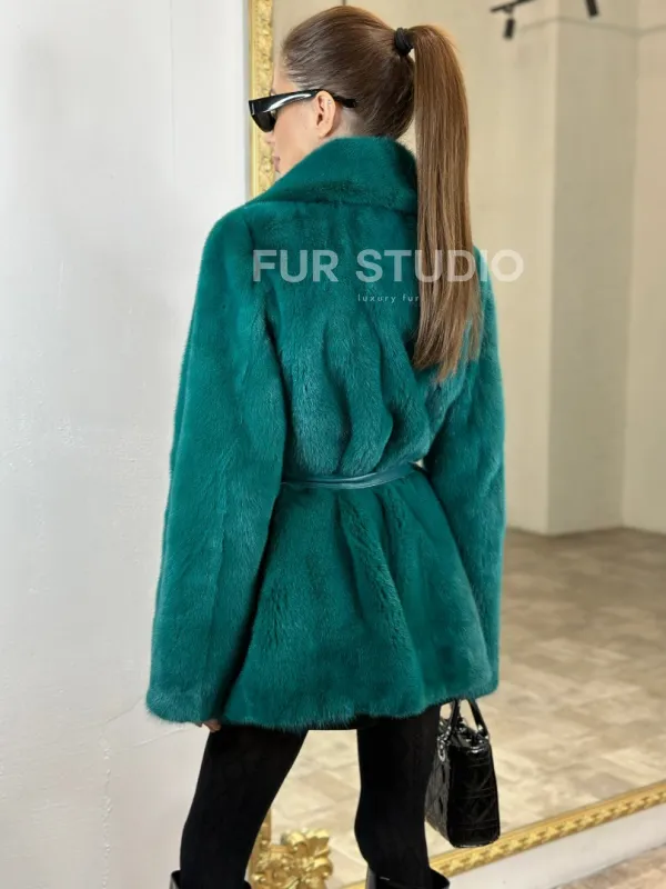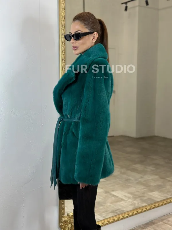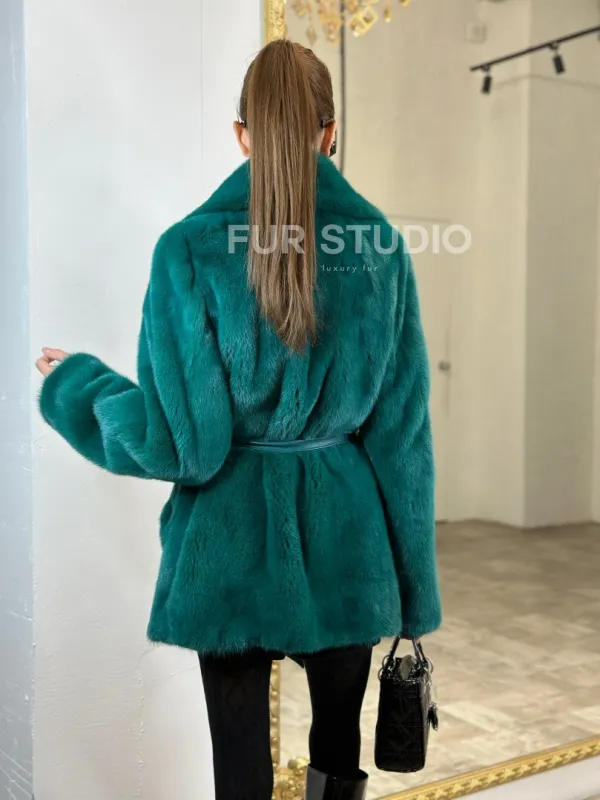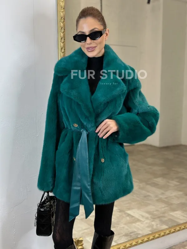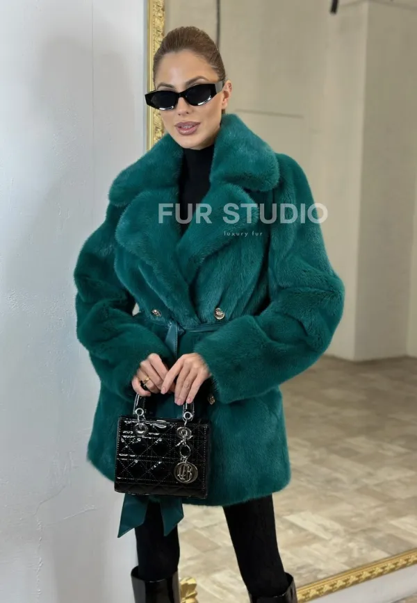 Жакет из меха норки английский воротник - морской изумруд 100702